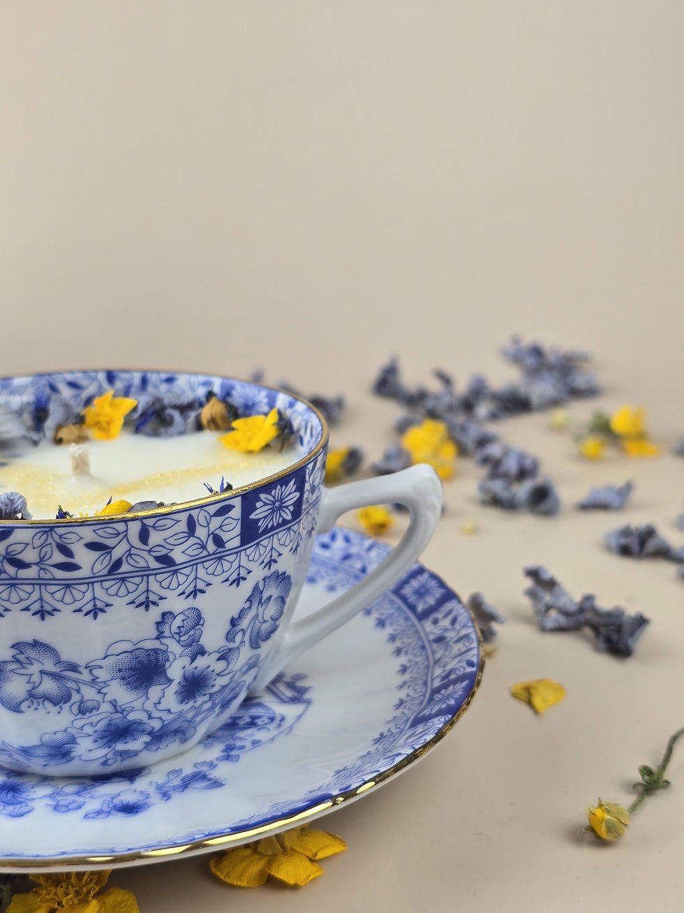 Les fleurs qui ornent nos créations sont cueillies à la main, puis séchées naturellement, et chaque bougie est coulée avec soin dans des contenants de seconde main ou façonnés artisanelement.