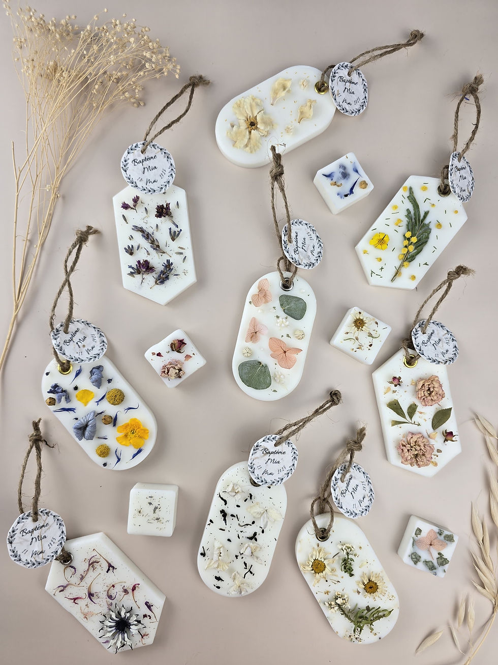 Suspensions parfumées en cire de soja décorées de fleurs séchées - Cadeaux invités pour mariages & événements